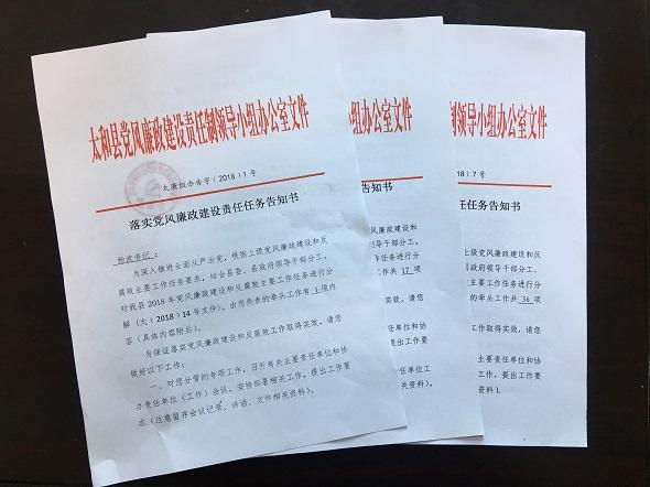 “由您负责的牵头工作共36项内容,为保证党风廉政建设和反腐败工作取得实效,请您做好以下工作……”近日,太和县党风廉政建设责任制领导小组办公室...