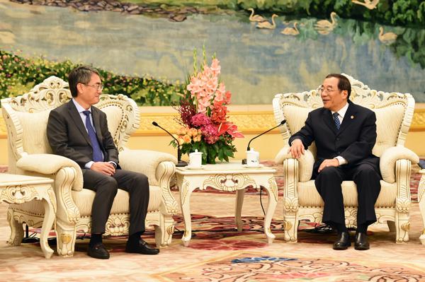 中共中央政治局常委、全国人大常委会委员长张德江29日上午在人民大会堂会见了以马有礼会长为团长的澳门中华总商会访京团全体成员。 张德江充分肯定...