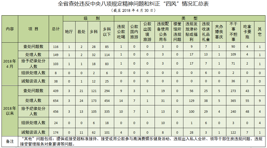 违反中央八项规定精神问题...