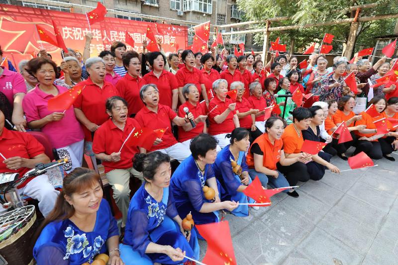 国庆期间,河北省石家庄市纪委监委机关党员干部在该市宁安社区庆“十一”文艺活动中同群众合唱《歌唱祖国》《没有共产党就没有新中国》等歌曲,唱响主...