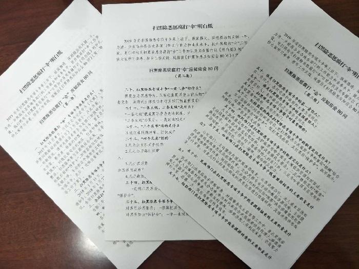 “各部门承担着什么样的职责,工作怎么开展,看下明白纸就全知道了。”文安县政法委副主任科员孟庆维拿着《扫黑除恶惩腐打“伞”明白纸》说,里面的内...