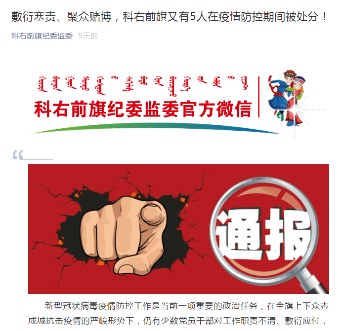 疫情当前,科右前旗纪委监委按照中央纪委国家监委印发的《关于贯彻党中央部署要求、做好新型冠状病毒感染肺炎疫情防控监督工作的通知》要求,牢牢把握...