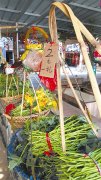 5月16日清晨,罗凤村村民李秀芬来到自家菜地,摘下南瓜苗、红薯叶,一捆一捆扎好,整齐码放在一个菜篮里。她没有回家,而是径直来到村里的菜市场,...