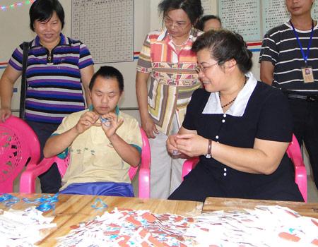 叶翠莲手把手教残疾人做手工
