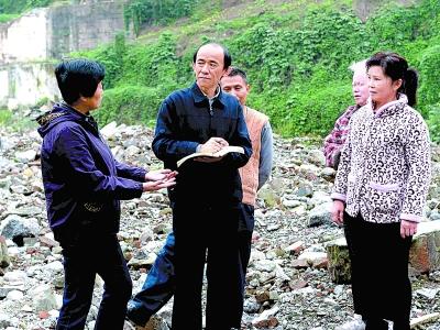 马善祥(左二)在调查。资料图片