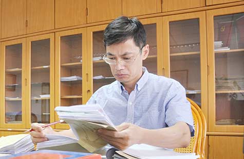图为李永谓正在办公室工作