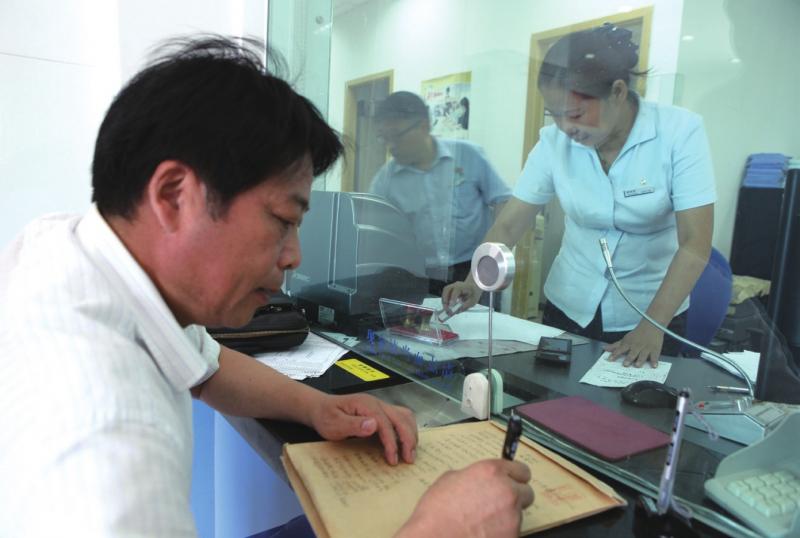 王洪祥(左一)在银行查账