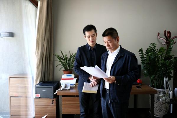 孙进军与同事研究谈话方案,助力案件查办。