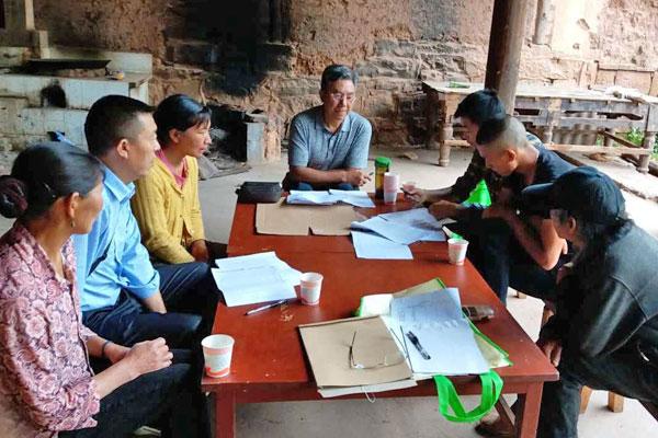 李祖彪(中)组织村组干部分析本村扶贫工作