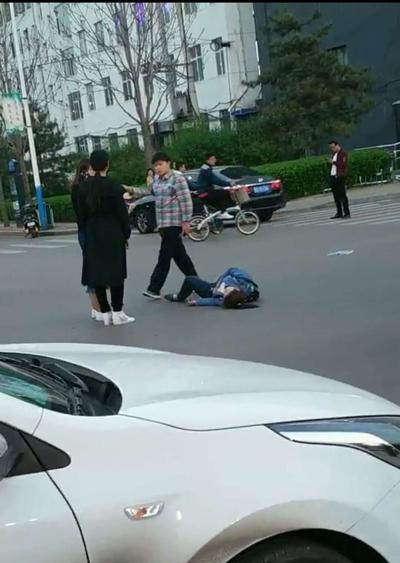 图为:沁源女警张丽娟组织路人救助伤者