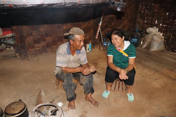 杨玉芝(右)在挂钩贫困户家中了解情况。陈龙 摄