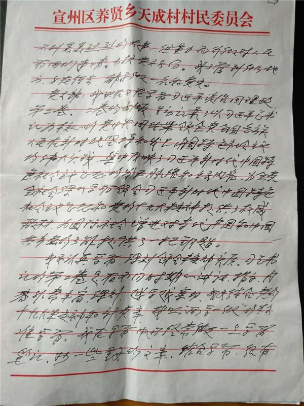 一封特别的“告白信”——宣城市宣州区养贤乡天成村老党员姚仁宏初心不变存风骨