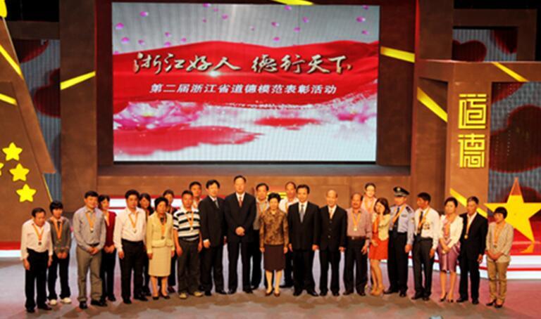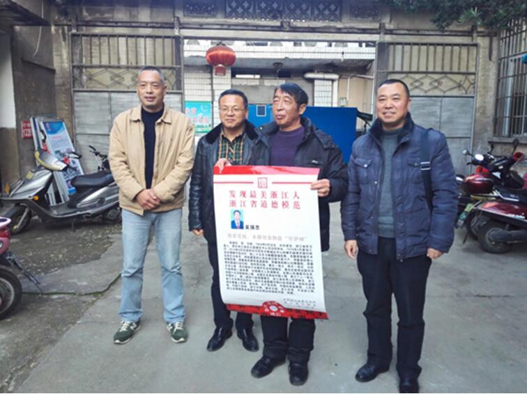 庆元县委常委宣传部长、文明办主任代表省委将“最美浙江人”红榜送吴强忠手上