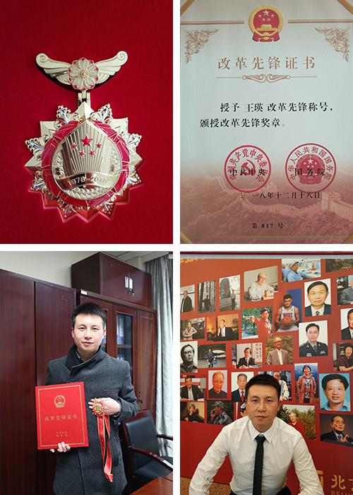 王瑛荣获的改革先锋勋章与证书,王瑛儿子张然与改革先锋证书奖章、与改革先锋照片墙上的母亲“隔空合影”