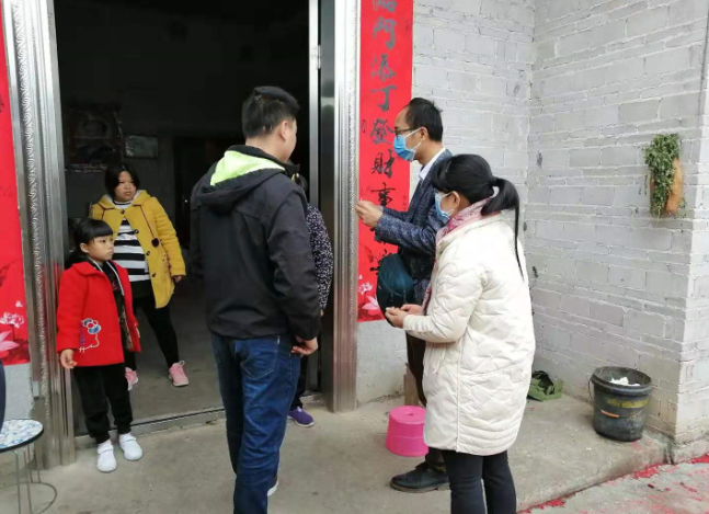 “新年好!我们到你们家拜年来了!”同何标一番简单寒暄后,吴秋月便直奔主题,向何标一家讲解疫情防控知识,医生也逐一给他们一家人测量体温,做好登记。