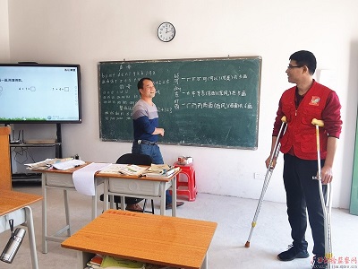 李守亭拄着拐杖走访汪勤新教学点