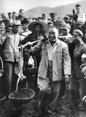 1958年5月25日,朱德在北京十三陵水库工地参加劳动