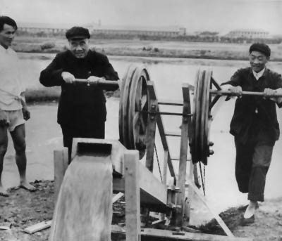 1958年4月,朱德在安徽省合肥市郊和农民一起车水