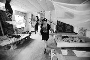 “当时这里全是床,住了40多个人,就我一个是女的。”