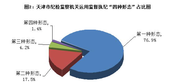 运用监督执纪“四种形态”处理3422人次。其中,第一种形态2631人次,占“四种形态”处理总人次的76.9%;第二种形态598人次,占17.5%;第三种形态145人次,占4.2%;第四种形态48人次,占1.4%。
