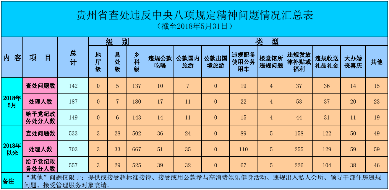 贵州:前5月查处违反中央八项规定精神问题533起