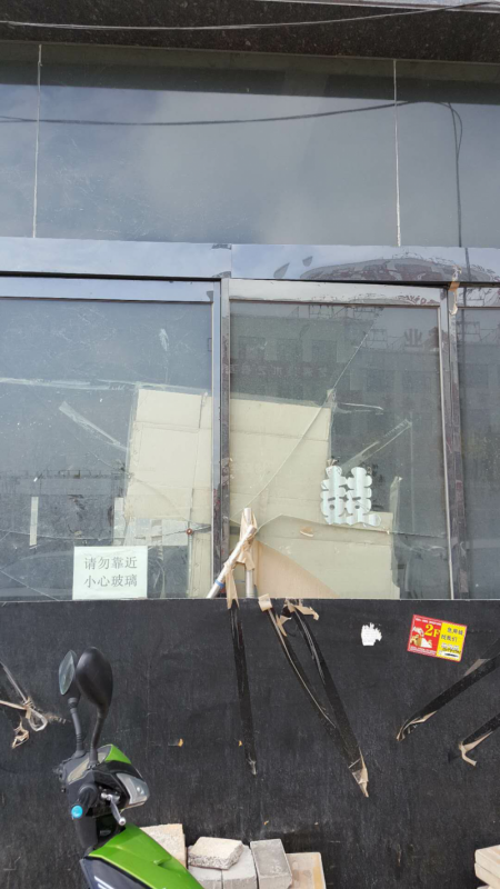 华庆新都市一楼商部门窗严重破损随时都有人员伤亡的危险