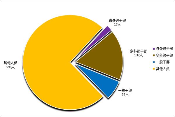 今年以来,共受理信访举报2217件,同比增长35%。处置问题线索3130件,增长12.5%。立案828件,给予党纪政务处分803人,其中县处级干部17人,乡科级干部137人,一般干部53人,其他人员596人。移送司法机关20人。
