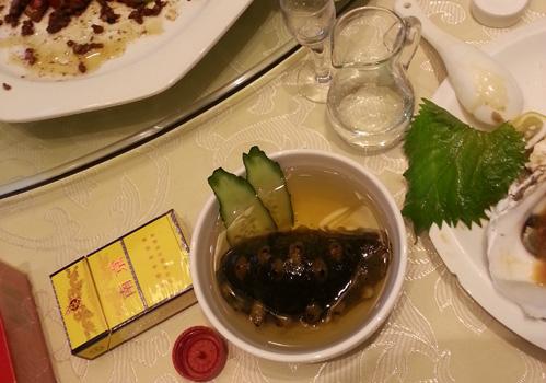 接下来,我们再来“参观”下“领导们”在海中天海鲜餐厅的这桌“残羹剩饭”:酒是茅台酒,烟是极品南京烟,吃的是鲍鱼、辽参等高档补品……(参见附图)