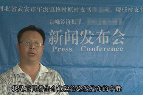 在常人眼中,新闻发布会一般是官方、明星、企业等召开,用于说明情况的。9月15日,河北邯郸武安市格村原村主任李胜开了一场“新闻发布会”,还在网络公布全程视频,却是为了举报该村现任村官,称其涉嫌多起经济犯罪,自己是“在冒着生命危险做发布”。目前,一被举报人已经否认举报内容。