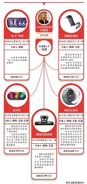 今年5月25日,宋建国因涉嫌受贿罪在一中院受审,检方指控,2004年至2014年4月间,宋建国利用其先后担任北京市公安局通州分局局长、北京市交管局局长的职务便利,分别为北京新月联合汽车有限公司法定代表人刘某、北京马桥神龙房地产开发有限公司法定代表人翟某、北京盘古氏投资有限公司负责人郭某等人在办理“京A”机动车号牌等事项上提供帮助,索取、非法收受上述人员给予的财物共计折合人民币2390余万元。