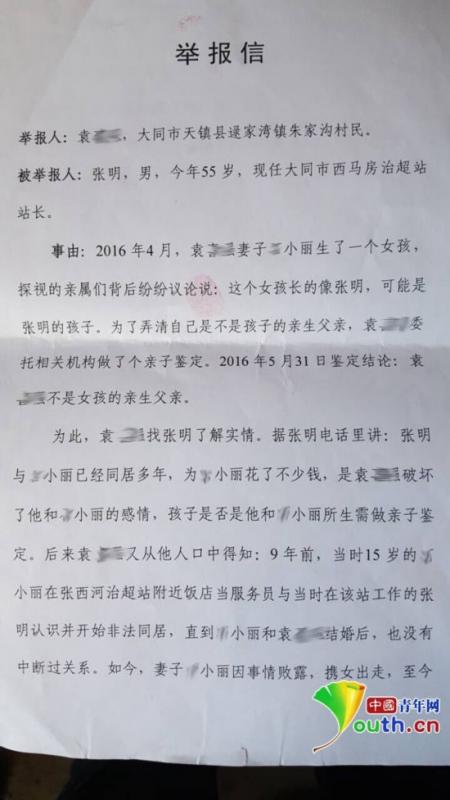 中国青年网记者联系到该贴的举报人袁某某,袁某某称自己与前妻小丽于2015年5月份结婚。2016年4月,小丽生了一个女孩,探视的亲属纷纷议论称女孩长得不像袁某某而像张明。后,袁某某委托相关机构进行亲子鉴定,结果显示袁某某非女孩亲生父亲。
