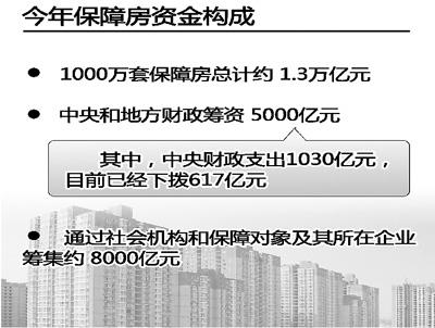 其中,中央财政投入保障性安居工程的专项补助资金将超过1000亿元,支持力度进一步加大。即便如此,仍有约90%的资金需要地方政府解决。