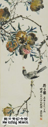 吴昌硕:(1844—1927)近代书画家、篆刻家。初名俊,后改俊卿。字昌硕,一作仓石,号缶庐,晚号大聋,七十以后字行,浙江安吉人。后寓上海。工书法,擅写"石鼓文"。用笔结体,能破陈规,自成一家。精篆刻,雄浑苍劲,自创面目。三十岁左右作画,博取徐渭、朱奇、石涛、李鳝、赵之谦诸家之长,兼取篆、隶、狂草笔意入画,色酣墨饱。雄健古拙,亦创新貌。其作品重整体,尚气势,有金石气。