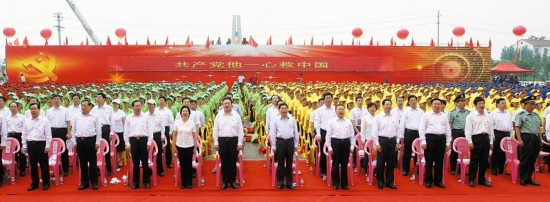 红旗如画,红歌如海。6月20日,“在太行山上——山西省纪念中国共产党成立90周年群众歌咏演唱会”在武乡八路军太行纪念馆广场隆重举行。省委书记、省人大常委会主任袁纯清,省政协主席薛延忠,省委副书记金道铭和省领导李小鹏、胡苏平、李政文、汤涛、李兆前、聂春玉、刘云海、申联彬、刘建华等出席歌咏演唱会。老红军老八路老劳模代表、省直有关部门和长治市负责同志及各界干部群众3000余人参加歌咏演唱会。