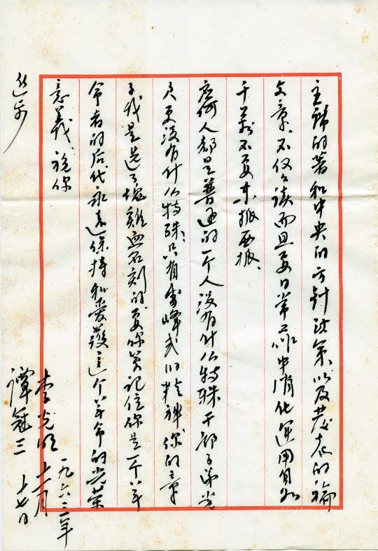 直到1952年8月7日,谭戎生才收到父母写来的第一封家书——