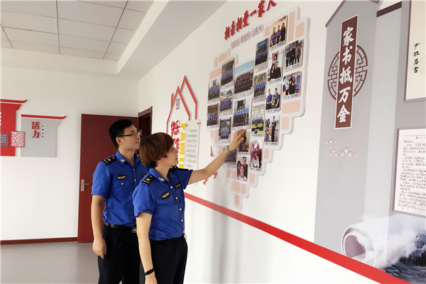 家庭是社会的细胞,小家连着大家,大家连着国家。在综合执法局,大家庭的家风建设融入在每个细节,润物无声。在机关二楼有个三角地带,是平时干部队员们休闲、学习、交流的不二选择,它有个亲切的名字——“家风庭院·睿智书吧”。这里有一个“分享书架”,书架上的书籍,很多书都是我们的队员从自己家里拿来的,“好书就是用来分享”的。