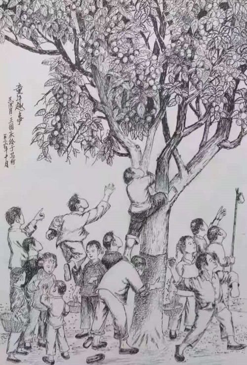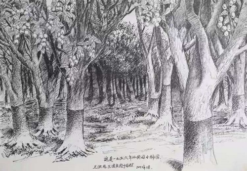 王褚村的柿子园枝繁叶茂惹人喜爱,伴随着我们幸福成长,是充满梦幻般的一段美好记忆。曾记得为“备战”国家建设南北大动脉时,“焦枝铁路线”从园中穿过,然无伤其繁花似锦的完美大雅,却为绿意盎然的柿树园平添一道孩子们为之欢呼的特别景像。再后却因“以粮为纲”谓柿子不算粮食,因树冠下那片很小不长庄稼而影响亩产的“莫须有”,顷刻间家乡的柿树园轰然倒塌,荡然无存。呜呼哉!梦呓乡语中的柿树园是我魂牵梦绕淡淡忧伤的乡愁,总想为之慷慨的奉献而悲怆歌唱,尤其是在坚守“文化自信”、现代化强国走向世界、讲好“中国故事”的伟大复兴年代,更应从我做起讲好“记忆中的王褚村”故事,为家乡千年古村继往开来的后生们留住柿树园那曾经的辉煌与荣光!