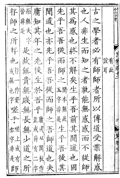 下图:《韩昌黎集》书影,这一页展示的是名篇《师说》