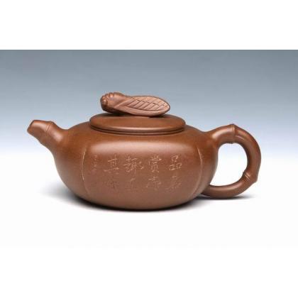 二是“形”。紫砂壶之形,在存世各类器皿中最为丰富,素有“方非一式,圆不一相”之赞誉。紫砂壶是整个茶文化的组成部分,它追求的意境,应为茶道所追求的“淡泊和平,超世脱俗”,而古拙正与这种气氛最为融洽。例如石桃、井栏、僧帽、掇球、茄段、觚菱、梅桩、仿古等传统造型,皆是时代冲刷后存下的优秀作品,以今天的眼光细细打量,其仍在闪闪发光。所以,紫砂壶之形,是决定壶之美的一个重要条件,造型美,壶则美,反之则不美。