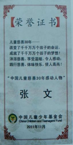 一年夏天,基金会组织全国贫困地区的儿童到北京参观,有一项活动是安排孩子们到各位理事家里吃饭。到张文家吃饭的有6个孩子、5位老师,由基金会一名副秘书长带队。张文请小客人们吃饺子,孩子们吃得很开心。张文还给6个孩子每人买了一个书包、一份学习用品。