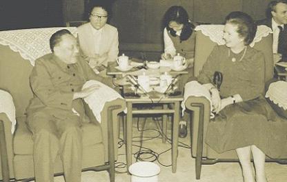 撒切尔夫人与邓小平一见面就说:“我作为现任首相访华,看到你很高兴。”