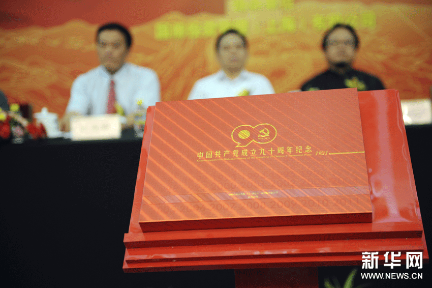 (2)6月21日,《党建》杂志社、中国集邮总公司在北京人民大会堂举行《中国共产党成立90周年纪念》邮册发行新闻发布会,这是在会上展出的《中国共产党成立九十周年纪念》邮册。