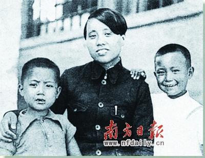 方志敏的妻子缪敏及儿子方英、方明在延安。