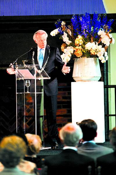 图为6月10日,荷兰海牙市市长约齐亚斯·范阿尔岑在环球司法研究所成立仪式上致辞。新华社发