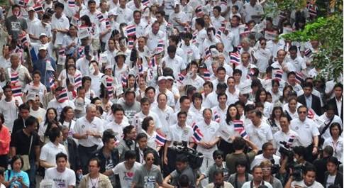 该游行由泰国股票交易所和最近刚组成反贪联盟的28个机构带头。泰国总理英拉和前总理阿披实都参加了游行。