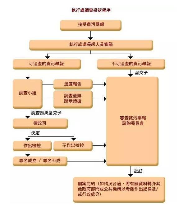 执行处的调查工作是收集证据,并无权作出检控决定。执行处会向律政司司长提交调查结果,供其研究及决定是否根绝反贪法例提出检控。