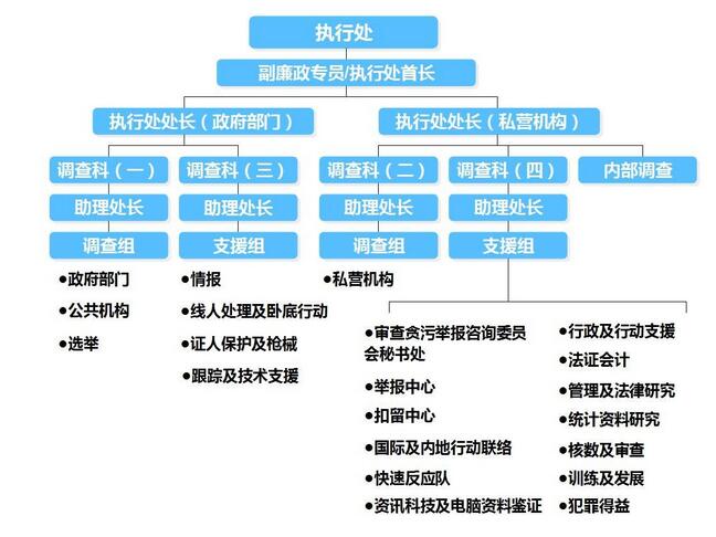 从组织架构上看,香港ICAC分工非常明确,常设“执行处”、“防止贪污处”和“社区工作处”,分别负责案件调查和审理、制定政策和防贪以及反腐倡廉。