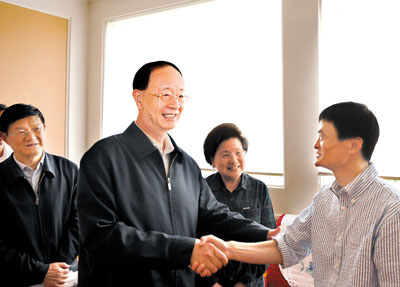 5月17日,中央纪委监察部机关举行互联网与电子商务发展讲座,邀请阿里巴巴集团董事局主席和首席执行官马云作讲座。图为何勇在讲座前会见马云。(尹健摄)