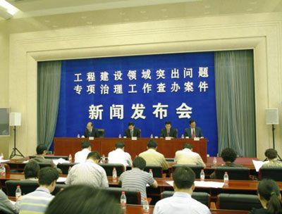 5月17日,中央工程治理领导小组成员兼办公室主任、监察部副部长郝明金在新闻发布会上通报了工程建设领域突出问题专项治理工作开展以来查办案件工作情况,并公布20起典型件。