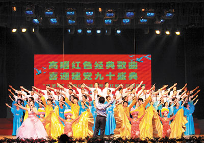 在建党90周年前夕,为严肃换届纪律,凝聚发展人心,激发工作热情,营造风清气正的良好环境,江西省萍乡市在全市纪检监察系统举行红歌大合唱比赛活动。图为5月5日决赛现场。(龙志飞 汪立新 摄影报道)